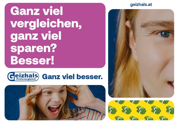 Im Mittelpunkt steht der neu entwickelte Claim "Ganz viel besser!", der alle Vorteile von Geizhals zusammenfassen soll. Unter diesem Claim wurden Plakate und digitale Assets entwickelt, um ganz Österreich darauf hinzuweisen, dass man lieber zum allerbesten und nicht zum erstbesten Angebot greifen soll. Mit dem Claim geht auch eine komplett neue Kommunikationslinie einher. Die Kampagne ist ab sofort on Air. Im Frühsommer sollen dann noch neue TV-Spots folgen.