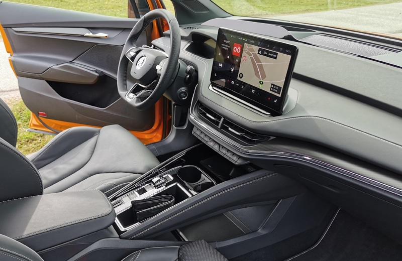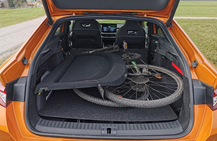 Im Inntenraum gibt es trotz abfallender Dachlinie und Panoramdach selbst im Fond großzügige Platzverhältnisse - auch über dem Scheitel. Die Knie kann man ob der immensen Beinfreiheit ohnehin übereinander schlagen, wenn man nicht allzu groß gewachsen ist. Auch das Kofferraumvolumen von 570 bis 1.610 Liter ist nur minimal kleiner, als jenes der normalen SUV-Variante. Lediglich beim Transport sperriger Gegenstände wie etwa Kühlschränke oder Waschmaschinen muss man Abstriche machen. Ein Mountainbike lässt sich hingegen locker verstauen (siehe Foto in der Slide oben). Vorne geht es ebenfalls luftig zu. Auf den Sportsitzen mit integrierten Kopfstützen spult man auch lange Strecken ohne ein Zwicken im Rücken ab. Die Bedienung erfolgt weitestgehend über den 13 Zoll großen Touchscreen. Dank einigen "echten" Schnellzugrifftasten gelingt sie nach kurzer Eingewöhnungsphase auch ziemlich intuitiv. Auch weil viele Funktionen per Sprache (Hey Laura") oder den echten Lenkradtasten bzw. Drehwalzen gesteuert werden können. Dadurch wird auch der unbeleuchtete und nicht sehr präzise Slider vor dem Touchscreen so gut wie nie benötigt. Für die Klimasteuerung hätten wir uns aber dennoch ein separates Bedienteil gewünscht. Das sehr kleine Kombiinstrument (5,3 Zoll), das eher schlecht ablesbar ist, fiel beim Testwagen hingegen nicht ins Gewicht. Dieser verfügte nämlich über ein sehr großes und klares Head-up-Display, das alle wichtigen Infos direkt in die Frontscheibe projiziert. Navi-Pfeile werden sogar via Augmented-Reality direkt auf die Straße gespiegelt.