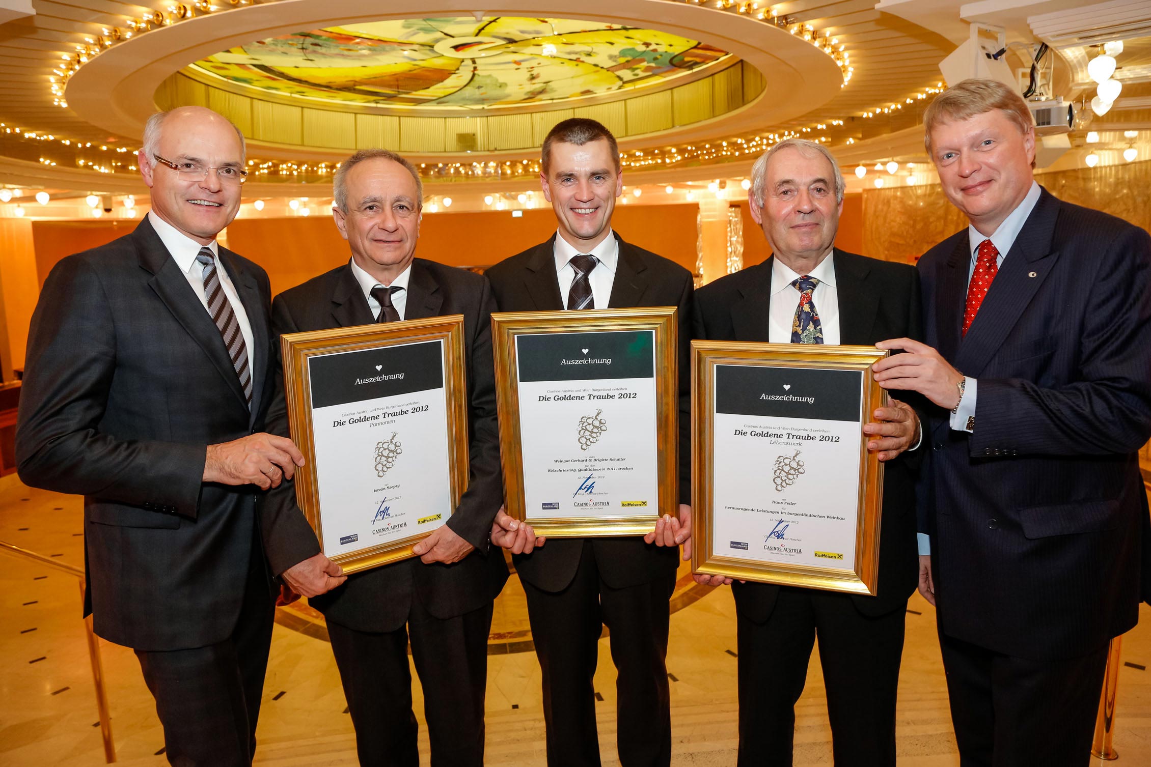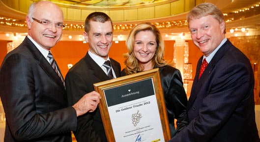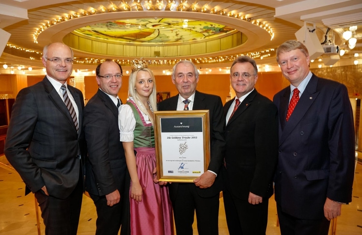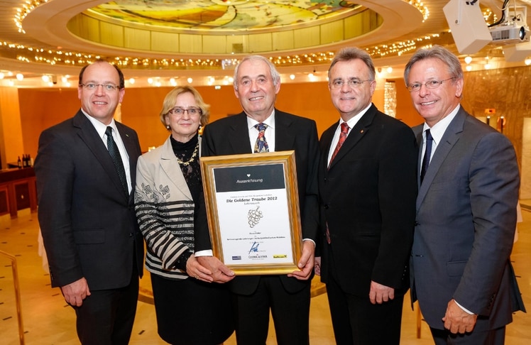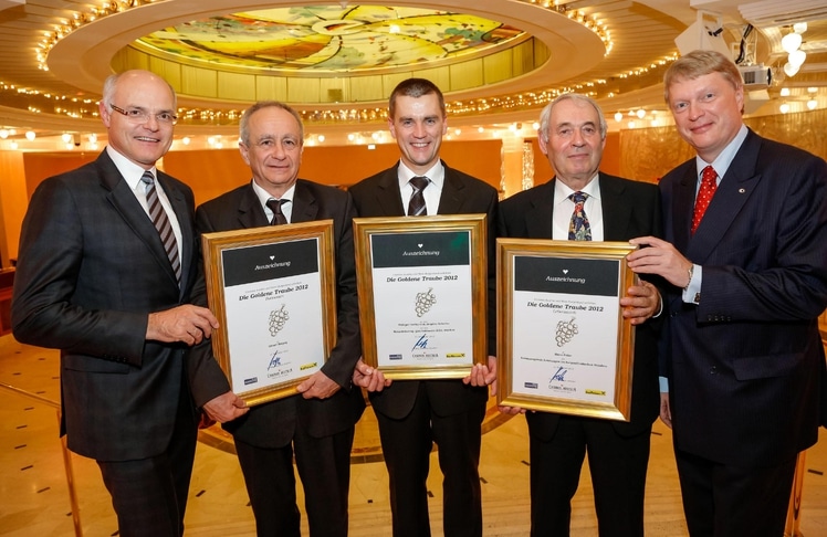 Die Goldene Traube für das Lebenswerk erhielt Hans Feiler vom Weingut Feiler-Artinger aus Rust, überreicht durch Landesrat Andreas Liegenfeld, der dem Winzer dafür dankte, dass er den Qualitätsweg des burgenländischen Weines so mitgebaut hat. Einen interessanten Preisträger gab es in der Kategorie Goldene Traube Pannonien, in der das grenzüberschreitende Engagement besonders gewürdigt wird. István Szepsy, in Mád – einem Nachbarort von Tokaj in Ungarn - beheimatet, ist heute der berühmteste Einzelerzeuger aus der Region.