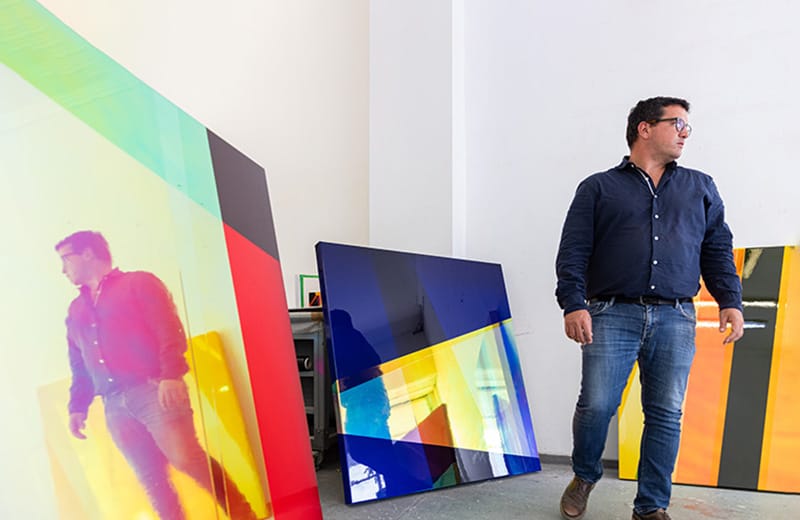 Vom 6. Mai bis 7. Juni 2023 zeigt die Galerie Smolka Contemporary in Wien die Werke des italienischen Künstlers Matteo Negri. Die optisch fantastische Wirkung der Werke kommt durch eine spezielle, von ihm entwickelte Technik, in der Folien, Acryl und Metall Verwendung finden, zustande. Die präzisen geometrischen Kompositionen, die somit entstehen, lassen deren zugrunde liegende Emotionalität bei der ersten Betrachtung noch nicht erahnen.