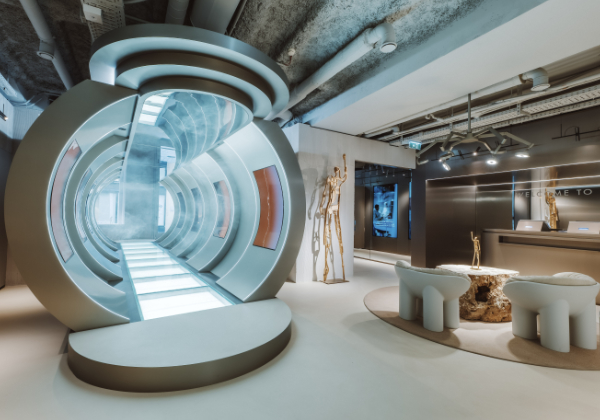 Der selbstgesteckte Anspruch klingt ambitioniert. So soll das Vor-Ort-Angebot im neuen Brandstore neue Maßstäbe, was Design, Materialien sowie persönlichen und digitalen 24/7-Health-Service betrifft, setzen. In der Alimentastic Bar sind neben den Präparaten im Store sowie dem 24/7-Store auch Functional Snacks und Drinks der Marken Biogena moments, Nu Magic Water sowie Zeitgeist Functional Coffee erhältlich. Highlight des neuen Standorts ist die futuristisch anmutende Eingangsröhre.