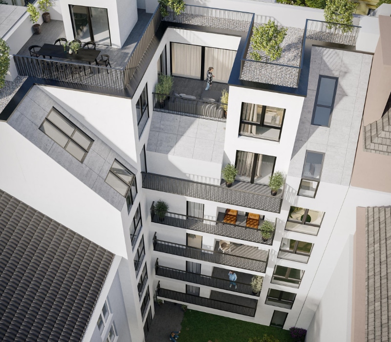 Bauprojekt Schiffmühlenstraße 56 – Innenhofansicht © VMF Immobilien