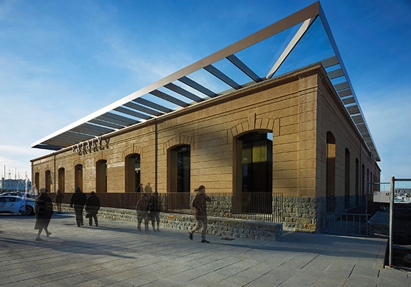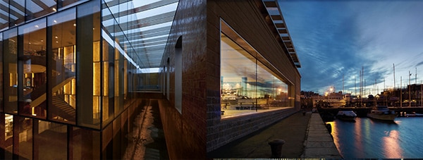 Die Architekten von Archea nahmen die Herausforderung an, ein zeitgemäßes Projekt für ein historisches Gebäude zu entwickeln. Ihr Sanierungs- und Umbauplan hat das bestehende Gebäude geschützt und gleichzeitig dessen städtische Umgebung respektiert. Der Plan hat das ursprüngliche Volumen unverändert gelassen und platzierte darin eine neue, ganz aus Glas bestehende architektonische Struktur, die durch über dem Wasser schwebende Stege mit dem bestehenden Perimeter verbunden ist. Das Bauwerk ist völlig eigenständig, lichtdurchlässig und ätherisch und folgt in seinen Proportionen dem Rhythmus des von der ursprünglichen Fassade vorgegebenen Wandverlaufs.