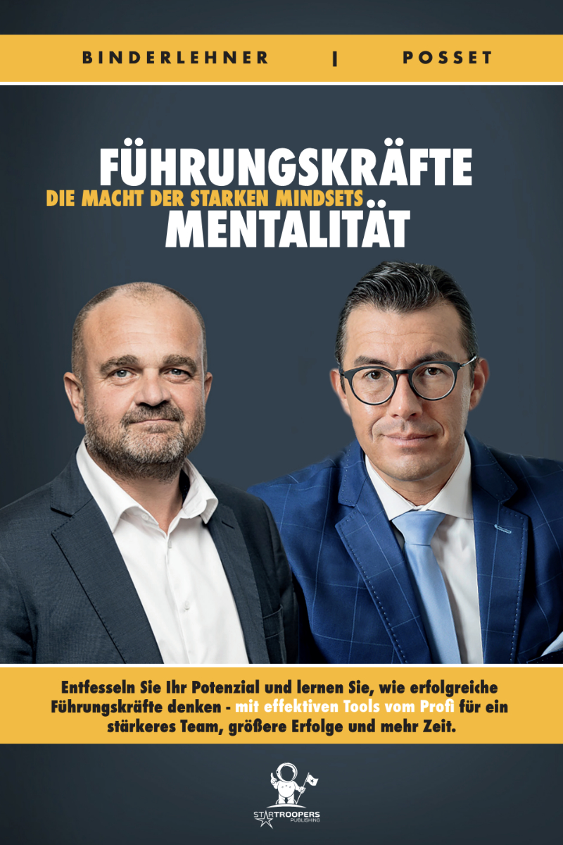 Markus Posset, Verwaltungsratsvorsitzender Star Troopers AG, Medienökonom und Honorarkonsul und Franz Binderlehner, Geschäftsführer Gewerkschaft vida, haben das Buch "Führungskräfte-Mentalität - Die Macht des starken Mindsets" vorgestellt und darin ihr über viele Jahre hinweg angereichertes Wissen sowie ihre Überzeugungen und Tipps niedergeschrieben, um anderen dabei zu helfen, ihre Führungsqualitäten zu verbessern.