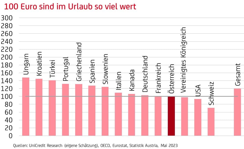 Zudem ist die Tatsache, dass das Preisniveau in einigen Urlaubsländern so viel günstiger als in Österreich ist, vor allem auf das hohe Einkommensniveau in Österreich zurückzuführen. Würde Österreichs Preisniveau niedriger liegen, wäre auch das Einkommensniveau geringer und Urlaube schwer leistbar.