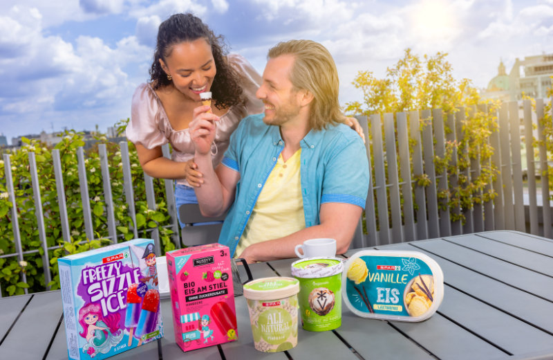 Es hat dieses Jahr zwar etwas länger gedauert als im Jahr davor, aber die warme Jahreszeit hat uns scheinbar doch endlich erreicht. Mit den steigenden Temperaturen, steigt auch der Wunsch nach einer kühlen Erfrischung. Das Eissortiment bei Spar, Eurospar und Interspar umfasst rund 300 Artikel und wird auch in dieser Saison wieder um einige Neuheiten erweitert. Diese Erweiterung bietet von klassischem Creme- und Stanitzel-Eis bis hin zu fruchtigem Sorbet sowie klassischen Eissorten oder Sorten speziell für Kinder oder Veganer:innen eine große Auswahl.