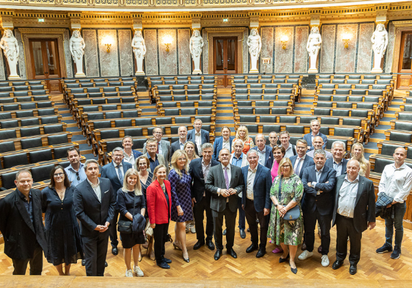 Das Parlament am Ring ist nicht nur das Herz der österreichischen Demokratie, sondern zugleich ein beeindruckendes historisches Bauwerk mit anspruchsvoller Architektur. Bei einem exklusiven Rundgang durch die Räume des Parlaments erfuhren die teilnehmenden Leitbetriebe Wissenswertes über parlamentarische Prozesse sowie interessante Fakten über die Geschichte und Sanierung des Hauses. Die exklusive Tour fand unter der Leitung von Nationalratspräsident Wolfgang Sobotka statt.