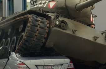 Arnold Schwarzenegger überrollt Auto mit eigenem Panzer