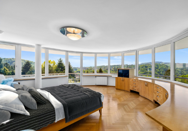 Im Obergeschoß befindet sich der wahrscheinlich schönste und architektonisch anspruchsvollste Raum der Villa - der Masterbedroom. Die 270 Grad Rund-Um-Sicht ermöglicht den Blick auf das Anwesen. Dem Masterbedroom angeschlossen sind ein Badezimmer und ein Ankleideraum. Ein weiteres Schlafzimmer samt Wohnbereich und angeschlossenem beheiztem Wintergarten sowie ein zusätzliches Badezimmer runden das Raumangebot dieser Etage ab.