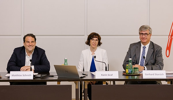 Beim Pressegespräch präsentierte Karin Graf, marketmind, die Eckpunkte einer Studie zur Motivlage Bargeld 2023. Einer angeregten Diskussion stellten sich im Anschluss auch Matthias Schroth, Direktor der Hauptabteilung Bargeld, Beteiligungen und Interne Dienste der Oesterreichischen Nationalbank, und Gerhard Starsich, Generaldirektor der Münze Österreich AG.