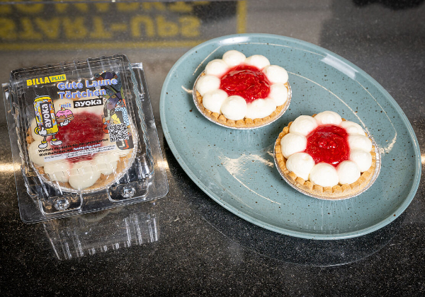Seit 2020 ist der "Good Mood Drink" des Wiener Start-ups ayoka in allen Billa Plus und ausgewählten Billa Märkten erhältlich. Nun wird die Produktpalette um die "Gute Laune Törtchen" erweitert.