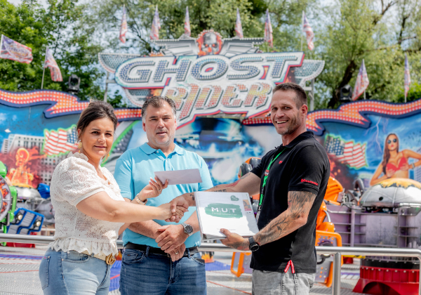 Die Schaustellerfamilie Löffelhardt, mit ihrem Fahrgeschäft "Ghostrider", spendet 1.000 Euro ihrer Dult-Einnahmen an den Verein MUT. "Wir waren heuer das erste Mal dabei und dürfen uns über erfolgreiche neun Tage hier in Salzburg freuen. Deshalb möchten wir auch etwas zurückgeben. Nach Rücksprache mit dem Dult-Team sind wir auf den Verein MUT gestoßen, der sich für die Menschen vor Ort, in der Region, engagiert", sagt die Familie Löffelhardt.