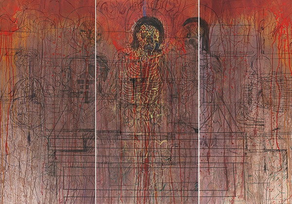 Die Druckgrafik ist immanenter Bestandteil seines Gesamtkunstwerks und es verwundert daher nicht, dass er auf Aktionsrelikten druckt, seine Druckvorlagen mehrfach kombiniert und wie Schichten übereinanderlegt und mitunter von eigener Hand nachbearbeitet. Entscheidend für beide ist auch die Zusammenarbeit mit dem Wiener Drucker Kurt Zein, der im August letzten Jahres verstorben ist.