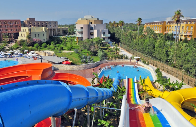 Der Blue Waters Club an der Türkischen Riviera liegt unweit von Side entfernt und bietet ein breites Sport- und Unterhaltungsprogramm für die ganze Familie. Im Aquapark mit vier Wasserrutschen findet sich ein Kinderpoolparadies mit Babyrutsche für die Kleinsten. Sieben Nächte im Fünf-Sterne-Hotel Blue Waters Club in der Türkei mit Flug ab Wien z. B. am 19. Juli kosten auf Basis All Inclusive ab 1.459 Euro pro Person und 349 Euro pro Kind im Doppelzimmer.