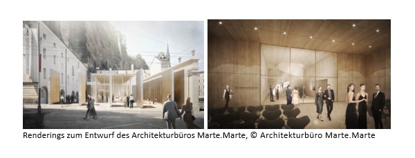 Anlässlich ihres 100-Jahr-Jubiläums initiierten die Salzburger Festspiele einen internationalen Realisierungswettbewerb. Den von der Jury prämierten Siegerentwurf des Architektenteams Marte.Marte präsentierte die damalige Präsidentin Helga Rabl-Stadler Anfang 2020.