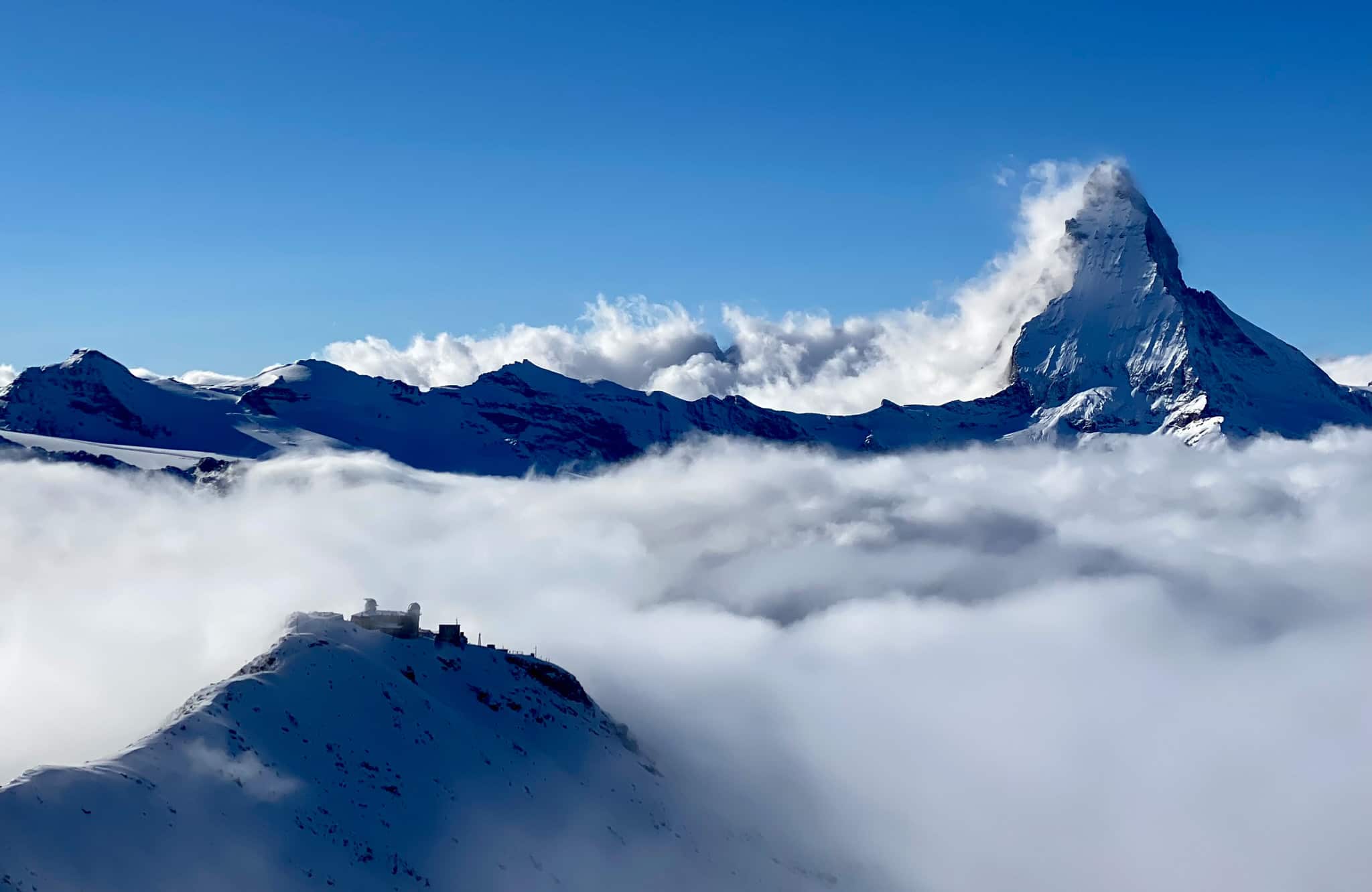 Ist der Kreislauf wieder stabil, steht dem Pistenvergnügen nichts mehr im Wege. Selbst Mitte Dezember kann man seine Schwünge beinahe ganz privat ziehen. Das Skigebiet ist riesig, die Möglichkeiten sind nahezu unendlich. Wer mit Kids anreist, steht früher oder später an der Standseilbahn Sunnegga, die einen durch Felsentunnel ins Familienskigebiet bringt. Auch der Gipfel des Gornergrat lockt.
