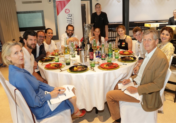 Am Tisch saßen Gourmets wie Martina und Karl Hohenlohe sowie Gewinner:innen aus dem Vorjahr (ÖFB-Teamchefin Irene Fuhrmann und die Aigner-Geschwister), Tennis-Ass Jürgen Melzer, die Kabarettist:innen Caroline Athanasiadis und Gerald Fleischhacker sowie Sporthilfe-Geschäftsführer Gernot Uhlir. Zudem waren einige wenige Medienvertreter:innen und (Sporthilfe-)Mitarbeiter:innen zur Verkostung eingeladen. Diese nahmen an einem Nebentisch Platz und durften das Menü ebenfalls bewerten. Auch LEADERSNET war beim Probedinner vertreten.