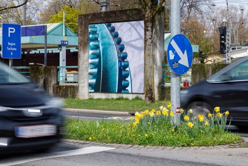 Monira Al Qadiri „Onus“, Installationsansicht KUB Billboards, 2023, Foto: Markus Tretter / Courtesy of the artist und König Galerie © Monira Al Qadiri, Kunsthaus Bregenz
