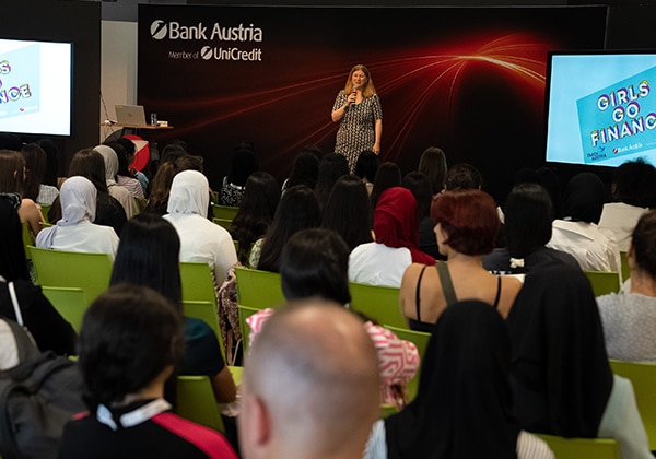 Die UniCredit Bank Austria unterstützt Teach For Austria bei dem Ziel, mehr Bildungsgerechtigkeit in Österreich zu schaffen. Der "Girls Go Finance"-Tag am UniCredit Center am Kaiserwasser wurde von Marion Morales Alibiñana-Rosner, Vorstandsmitglied für Wealth Management und Private Banking der UniCredit Bank Austria, initiiert, die im Rahmen des Corporate Volunteering Programms von Teach for Austria an Schulbesuchen teilgenommen hat.
