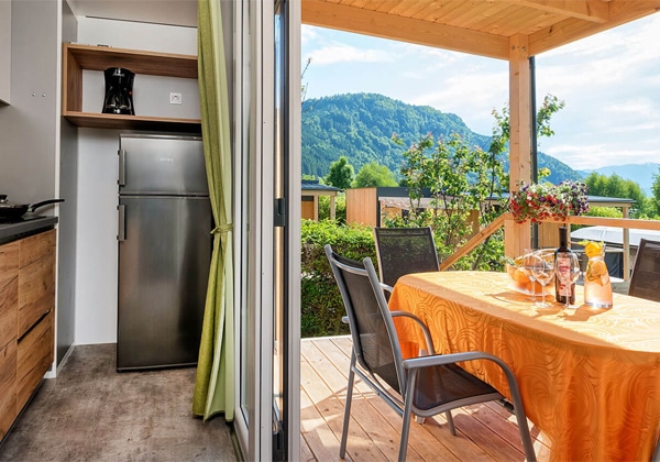 Highlights: Familienfreundliche, geräumige und modern eingerichtete Mobilheime, "Flower, Tropic, Lavendel" mit Blick auf die Berge, inklusive drei Mal freier Eintritt zur Wellness Oase. Von Campern bewertet mit: 4,8