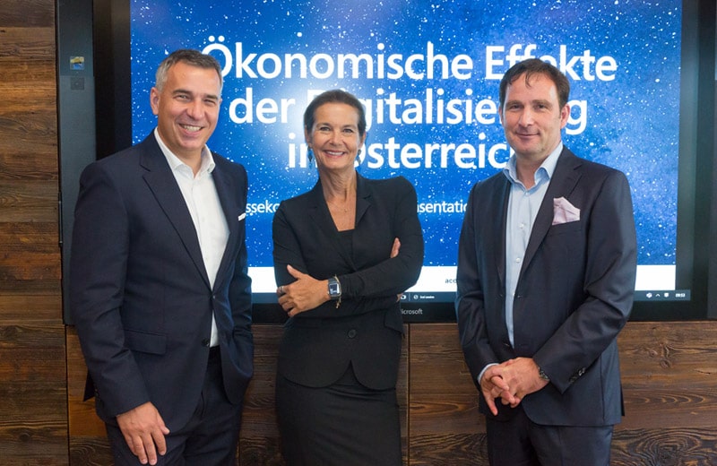 Im Rahmen einer Pressekonferenz haben Michael Zettel, Country Managing Director bei Accenture Österreich, Christiane Noll, Country Manager bei Avanade Österreich, Hermann Erlach, General Manager bei Microsoft Österreich und Monika Köppl-Turyna, Direktorin bei EcoAustria die Ergebnisse der neuen Studie präsentiert und Handlungsempfehlungen aufgezeigt, die sich daraus für den Wirtschaftsstandort Österreich ableiten lassen. LEADERSNET.tv holte die vier Expert:innen im Rahmen der Studienpräsentation vor die Kamera.