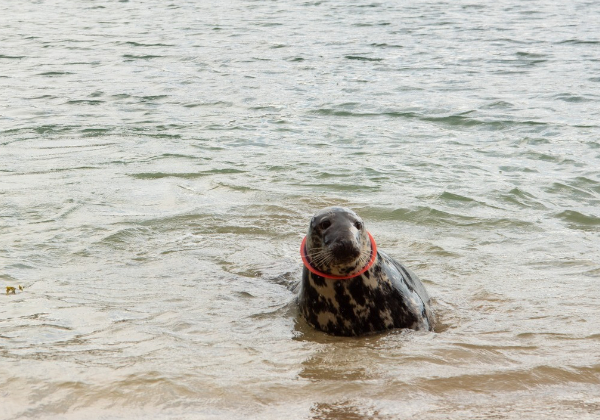 Nachdem letztes Wochenende der Seehund mit einem Frisbee um den Hals erstmals an der Küste Cornwalls gesichtet wurde, startete die "British Divers Marine Life Rescue" einen Rettungsversuch. Da das Spielzeug bereits tief in die Haut steckte und man keine weitere Verletzungen riskieren wollte, entschied man sich, die Mission abzubrechen.