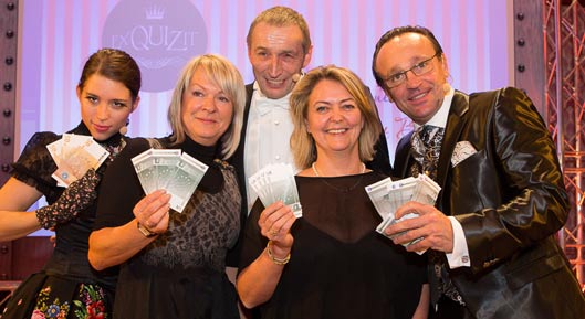Wer kennt das Gefühl des Mitspielens bei der allseits bekannten "Millionenshow" nicht? Man sitzt gemütlich im Wohnzimmer, trinkt ein Gläschen Wein und rät nebenbei mit. Diese Zutaten nun um die Möglichkeit des direkten Mitspielens erweitert, ergeben ein neuartiges Dinnerspektakel namens "exQUIZit - Das raffinierte Dinnerquiz". Vorerst kann man sich unter den Schlagworten "Das Quiz mit Biss" nicht wirklich etwas vorstellen, jedoch spätestens ab dem zweiten Gang schaffen es drei Schauspielprofis auf höchstem Niveau sämtliche Gäste ins Quizfieber zu stürzen. Paarweise wird interaktiv per iPad mitgeraten und das Superhirn des Saales gesucht. Bei dem Überangebot an Dinner- und Artistikshows ist es eine wirkliche Freude, dass hier etwas ganz Neuartiges geboten wird. Für Firmen, die das Dinnerquiz - das sich auch als Weihnachtsfeier bestens eignet - buchen, besteht sogar die Möglichkeit, firmenaffine Fragen in das Quiz einzubauen.