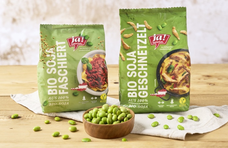 Ja! Natürlich erweitert sein Sortiment um "Bio-Soja Geschnetzelt“ und "Bio-Soja Faschiert". Die beiden Neuheiten sollen Veganer:innen eine rein pflanzliche Alternative zu den Fleischvarianten bieten. Sie bestehen zu 100 Prozent aus Bio-Soja aus Österreich und sollen somit auch mit Regionalität überzeugen.