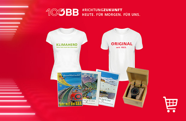 2023 ist ein besonderes Jahr für die ÖBB, denn sie feiern ihr 100-jähriges Jubiläum. Zu diesem Anlass findet man besondere Artikel im Fanshop.