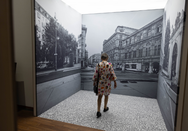 … und dann sind da noch Installationen wie der "Foto-Raum", eine Realität gewordene Illusion, die bisher nur als Idee existierte. Wie wenn es keine Wände gäbe, reicht das Drinnen der Albertina in die äußere Welt hinein, wie selbstverständlich "hinausgehbar":