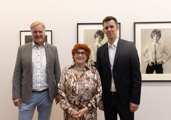 Wien 2023 begrüßt VALIE EXPORT – bei der Ausstellungseröffnung an ihrer Seite: Klaus Albrecht Schröder, Kunsthistoriker und Direktor der ALBERTINA (li.) und Kurator Walter Moser © eSeL Lorenz Seidler