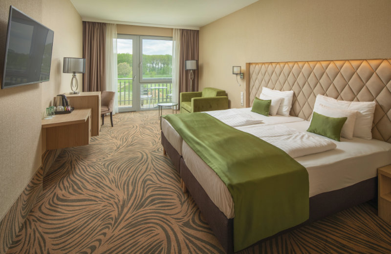 Nach der Golfrunde empfiehlt sich ein Besuch in der komplett neu gestalteten Saunawelt. Oder im Schwimmbad, mit Erlebnis-, Sport- und zwei Thermalwasserbecken. Auch das Massageangebot kann sich sehen lassen, genauso wie die Beauty-Anwendungen. Großartig ist auch das umfangreiche Entertainment im Hotel mit Bowlingbahnen, Sport- und Golfsimulator, Darts, Billard und Tischfußball. Was auch den Anspruch als Familienhotel unterstreicht.