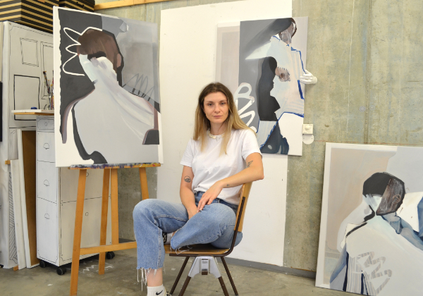 Ganz nach dem Motto: "Don´t let your body be fast fashion!" verzichtet die Künstlerin in ihren neuen Werken bewusst auf ausgearbeitete Gesichter. Nur deren Umrisse lassen Körper erahnen. In einer Welt, in der gefühlt jede Minute ein anderer Körperbau im Trend liegt, will die Künstlerin gezielt gegen dieses Phänomen arbeiten und ihre menschenbezogenen Darstellungen so neutral und inklusiv wie möglich darstellen.