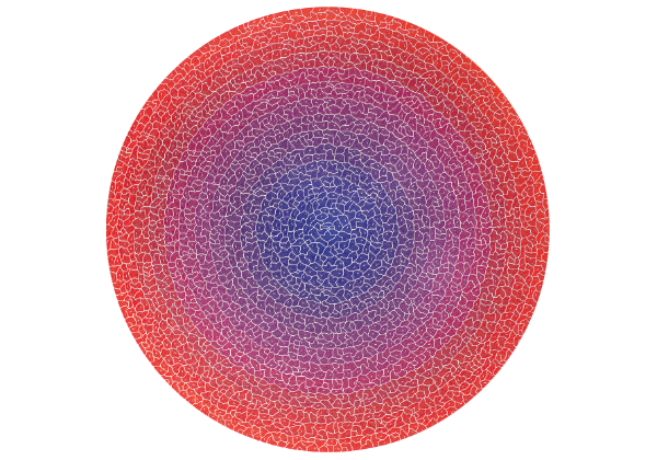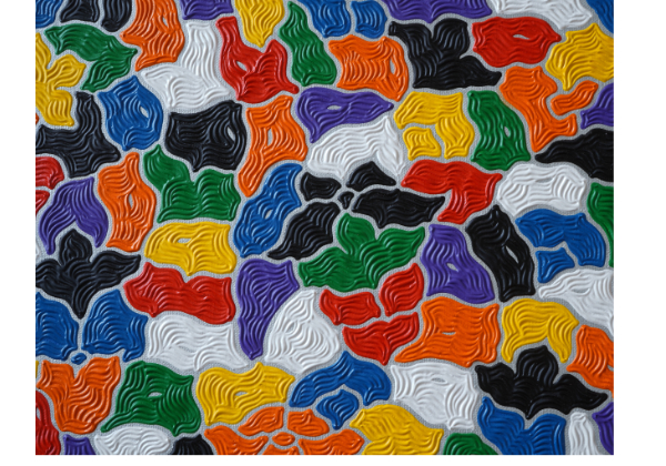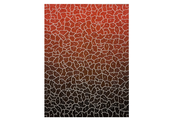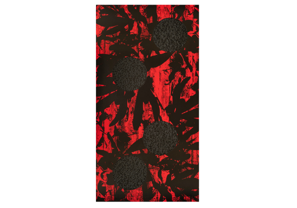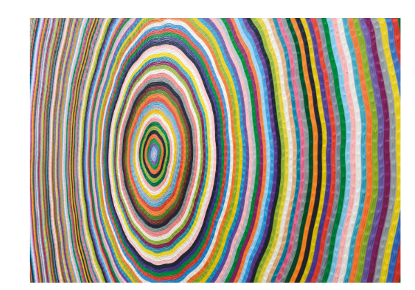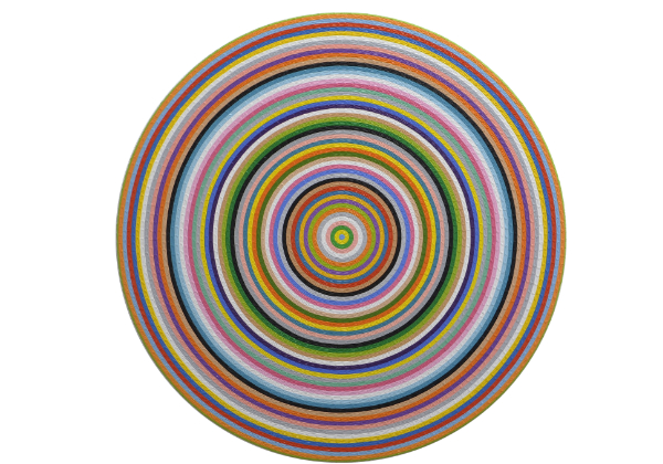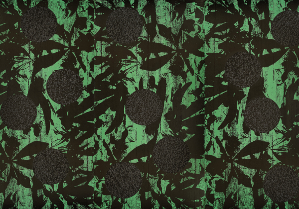 Yalcindag verwendet einfache Holzbretter und druckt deren Maserung als all-over auf die Leinwand. Diese Spuren des Lebens und Wachsens korrespondieren mit dem feinen Liniennetz seiner Malerei, die sich bei diesen Werken komprimiert in den Kreisformen findet. Über die Holzdruckpartien druckt Yalcindag mittels Siebdruck große Pflanzenmotive, womit er Andy Warhol, der diese Technik seit den 1960er Jahren einsetzte, seine Ehre erweist. Statt ‚Ikonen‘ der westlichen Konsum- und Medienwelt verteilt Yalcindag große Pflanzenmotive frei über die Bildfläche. Wie Warhol (oder auch Nitsch) verzichtet Yalcindag in seiner Kunst stets auf einen konventionellen, europäisch-westlichen Malduktus (hervorgebracht durch Farbe und Pinsel) zugunsten einer überindividuellen und damit grundlegenden Prinzipien sichtbar machenden Bildsprache. Bei Yalcindag ist es seit jeher eine Auseinandersetzung mit der Bildkultur des Ornamentalen.