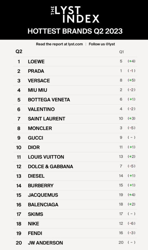 Die Shopping-App Lyst veröffentlicht jedes Quartal in ihrem Lyst-Index die begehrtesten Designer-Labels. Dafür wird das Online-Einkaufsverhalten von mehr als 200 Millionen Käufer:innen pro Jahr analysiert. Um den Bekanntheitsgrad von Marken und Produkten zu ermitteln, werden auch Erwähnungen in sozialen Medien und Engagement-Statistiken berücksichtigt. Nun ist viel Bewegung am Trend-Barometer zu beobachten – mit neuem Spitzenreiter.
