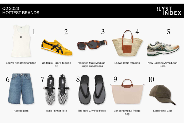 Das spanische Designer-Label Loewe überholte den Titelverteidiger Prada und belegt nun die Spitzenposition. Mit einem Anstieg der Suchanfragen um 19 Prozent im letzten Quartal – dafür dürfte das aktuell beliebte Tank-Top mit Logo (siehe zweites Bild oben) – verantwortlich sein. Neben dem Top, das auch an Kylie Jenner gesichtet wurde, ist das heißeste Produkt des Quartals die Tote Bag aus Bast. Die Loewe Korbtasche hat sich den Status eines Kult-Accessoires gesichert und kommt diese Saison in der Paula's Ibiza Edition.
