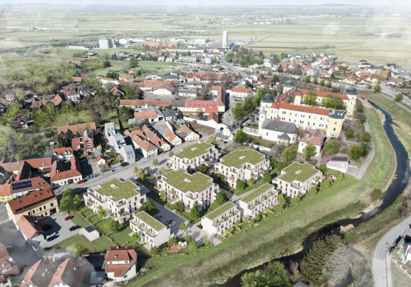 Das neue Wohnbauprojekt "Schlosswiese - Zuhause im Tullnerfeld" der NOE Immobilien Development GmbH (NID) liegt unmittelbar neben dem Schloss Judenau.