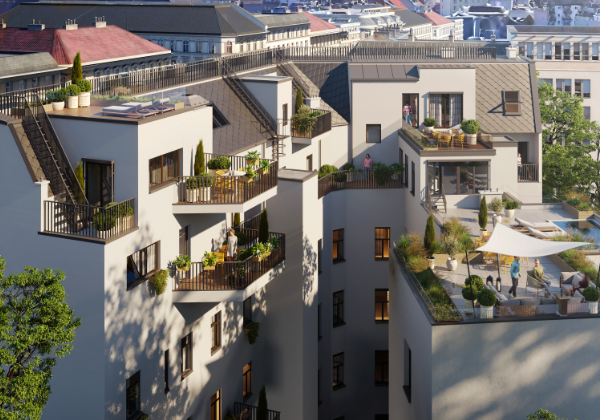 Das 1900 erbaute Eckgründerzeithaus wird derzeit revitalisiert und an das Fernwärmenetz Wiens angeschlossen und das Dachgeschoß ausgebaut. Die 24 Ein- bis Vierzimmereigentumswohnungen bieten Wohnflächen zwischen 33 und 187 Quadratmetern sowie neu errichtete Balkone und Terrassen.
