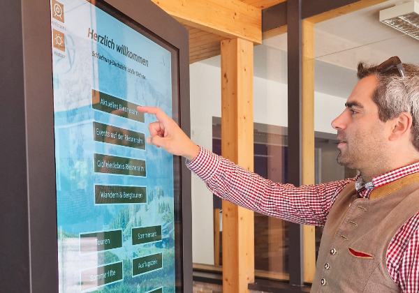 An mehreren Orten wurden die sogenannten "Digital Signage"-Stelen aufgestellt. Die mit touchfähigen Displays ausgestatteten Säulen werden nun als interaktive, benutzerorientierte Informations- und Werbequellen genutzt. Der berührungsempfindliche Bildschirm soll die Besucher:innen durch eine komprimierte Version der Website des Tourismusverbandes zu den gewünschten Inhalten führen. Informationen zum Wetter, Werbebotschaften, Produktdetails und Medieninhalte aller Art, die sich an ein größeres Publikum richten sollen, sollen mittels Digital Signage ein besonders hohes Maß an Aufmerksamkeit erreichen.