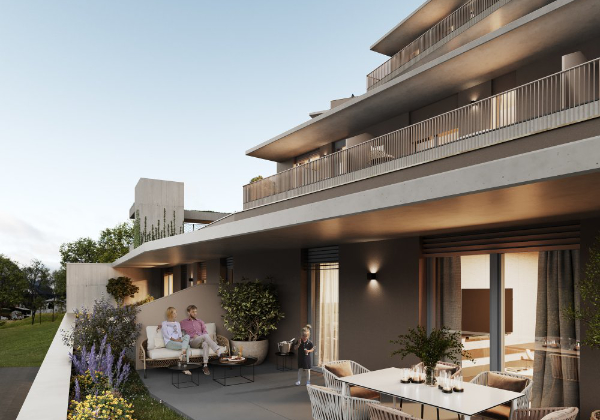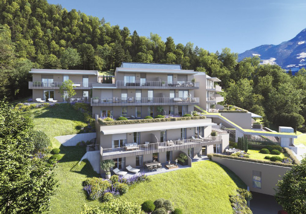 Die Zwei- bis Vierzimmerwohnungen sind zwischen 45 und 85 Quadratmetern groß und verfügen über Freiflächen in Form von Terrassen und Balkonen. Der Baukörper soll sich an die umgebende Topografie anpassen und auch in den oberen Geschoßen private Gartenflächen ermöglichen. Echtholz-Parkettböden im gesamten Wohnbereich sowie großformatige Fliesen in den Bädern und im WC sind genauso Teil der Ausstattung, wie wärmedämmende Drei-Scheiben-Isolierverglasung. Ein Personenaufzug rundet das Angebot ab.
