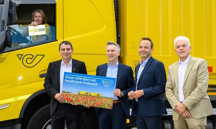 Die Österreichische Post betreibt die ersten sechs LKW ihrer Flotte mit Hydrotreated Vegetable Oils (HVO). Dabei handelt es sich um einen erneuerbaren Treibstoff, der aus Abfällen, Fetten, pflanzlichen Reststoffen und Pflanzenölen hergestellt werden kann. HVO lässt sich ohne technische Umrüstung in Dieselmotoren einsetzen. Laut Hersteller:innenangabe können im Vergleich zu fossilem Diesel über den Produktlebenszyklus hinweg bis zu 90 Prozent der CO2-Emissionen eingespart werden. Der HVO-Treibstoff für die ersten Tests kommt von Eni Sustainable Mobility und Biofuel Express.