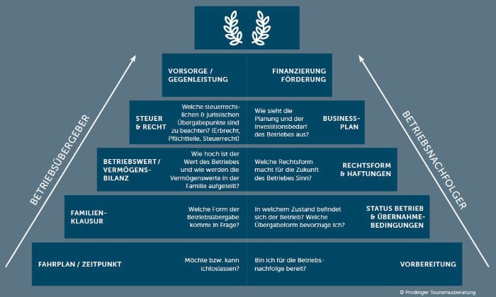 Die Prodinger Tourismusberatung hat dazu eine "Betriebsübergabe-Pyramide" mit integrierten Modulbausteinen entwickelt.