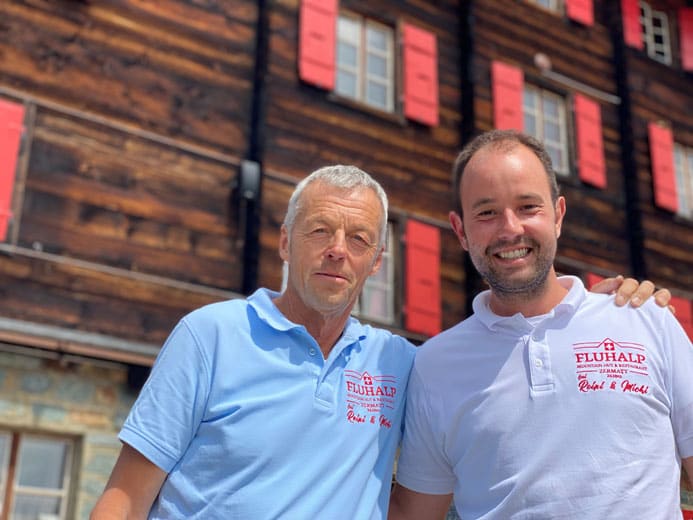 Die beiden Hüttenchefs der Fluhalp in der Zermatter Bergwelt Reinhard Kopler und Michel Deuerlein im Interview.