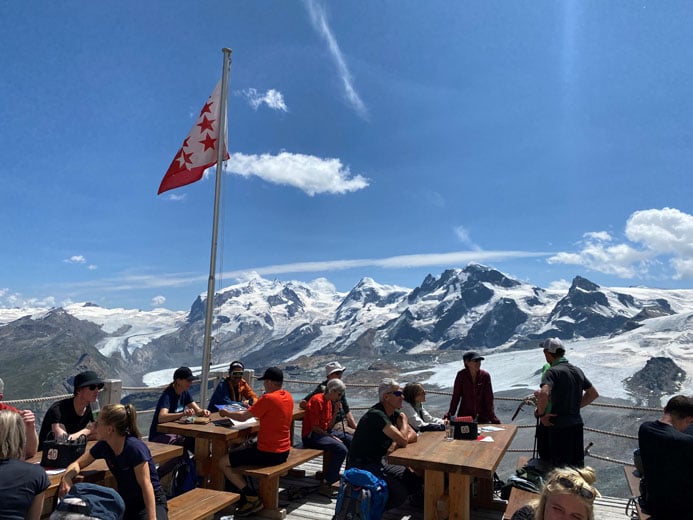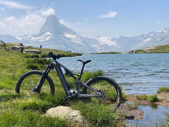 So richtig cool – im wahrsten Sinne des Wortes – ist die Fahrt mit einem Elektro-Mountainbike von Zermatt ins Bergrestaurant Fluhalp – Höhenunterschied knapp 1.000 Meter. Über den 5-Seenweg lohnt sich ein Fotostopp am Stellisee. Schöner geht es wirklich nicht mehr.