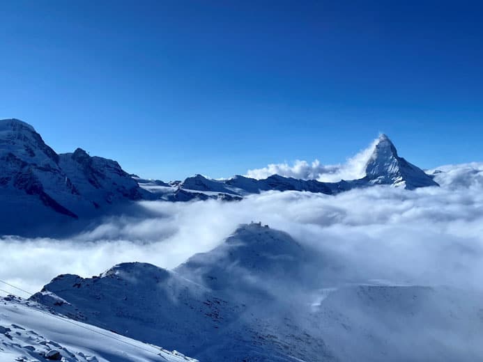 Mit der neuen Panoramagondel Matterhorn Glacier Ride II erreicht man in einer höchst spektakulären Fahrt das kleine Matterhorn und hat dabei das Gefühl, als würde man fliegen. Die höchstgelegene Bergbahnstation Europas bietet ein atemberaubendes Panorama auf italienische, französische und Schweizer Bergriesen. Auf einer Höhe von 3.883 Meter quert man einen Stollen, landet auf dem Gletscher-Plateau namens Rosa und ist nur einen Steinwurf von der italienischen Grenze entfernt. Genau dies ist auch der Grund für den Namen Spaghetti-Tour. Italienische Köstlichkeiten werden auf Italiens Hütten geboten (Rifugio Ayas), wobei man sich tagsüber die Schweizer 4.000er Gipfel namens Pollux, Castor und Breithorn gönnen kann. Wer es ein bisschen gemütlicher anlegt, kann sich von Zermatt aus mit der Gornergrat Bahn in die Welt der Berge mit Blick ins ewige Eis entführen lassen.