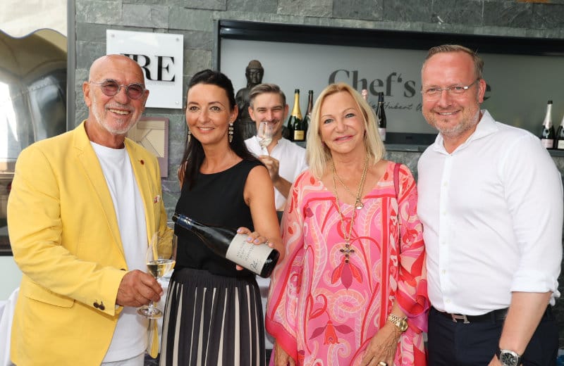 Vier Winzer – der Winzerhof Weiss aus Längenfeld, das Weingut Polz aus der Südsteiermark, das Weingut Waldschütz Kamptal und die Kellerei "In Signo Leonis“ Heribert Bayer im Mittelburgenland – brachten ihre besten Tropfen, dazu gab es noch Gin, Trumer Pils, Sekt von Kattus. Der Gastgeber servierte wurden Trüffelgnocchi, Austern Fin de Claire von Eishken Estate, Kaviar und andere Schmankerln aus der vielfach ausgezeichneten Küche des Hauses. Entertainer Gregor Glanz erfüllte mit seinem Auftritt alle musikalischen Wünsche der Gäste, unter anderem ein Duett mit Armin Assinger.