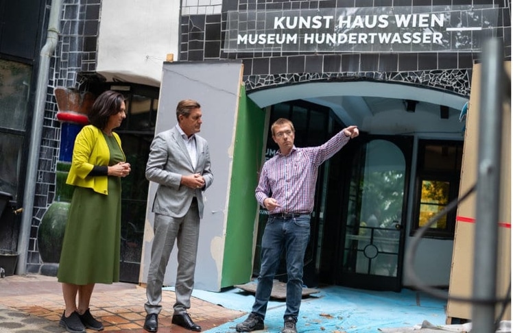 Bisher läuft beim Umbau im Kunst Haus Wien, einem Museum der Wien Holding, alles nach Plan, aber bis zur Widereröffnung stehen der beliebten Kulturinstitution im dritten Bezirk noch ein paar intensive Monate bevor. Mit der Erschließung des Hydrothermie-Systems für die künftige nachhaltige Energieversorgung wurde diese Woche ein erster wichtiger Schritt in Richtung CO2-Neutralität gesetzt. Bei einem Baustellenbesuch inspizierte Wirtschaftsstadtrat Peter Hanke gemeinsam mit Kunst Haus Wien-Direktorin Gerlinde Riedl die neu errichtete Brunnenanlage im Innenhof des Museums und informierte sich über den Fortschritt der Modernisierungsmaßnahmen.