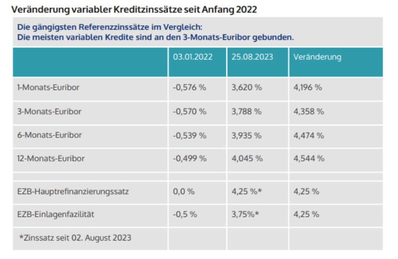 Für 2023 sind noch drei Sitzungen des EZB-Rates geplant, in denen über mögliche weitere Leitzinserhöhungen entschieden wird. Nach dem kürzlich abgehaltenen internationalen Zentralbanker-Symposium in Jackson Hole zeichnen sich zusätzliche Zinssteigerungen ab. Falls der Leitzins in der kommenden EZB-Sitzung am 14. September 2023 um 0,25 Prozent erhöht wird, würden Kreditnehmer:innen mit variabler Verzinsung zusätzlich etwa 175 Millionen Euro jährlich belastet, bei einer Erhöhung um 0,5 Prozent sogar 350 Millionen Euro pro Jahr.