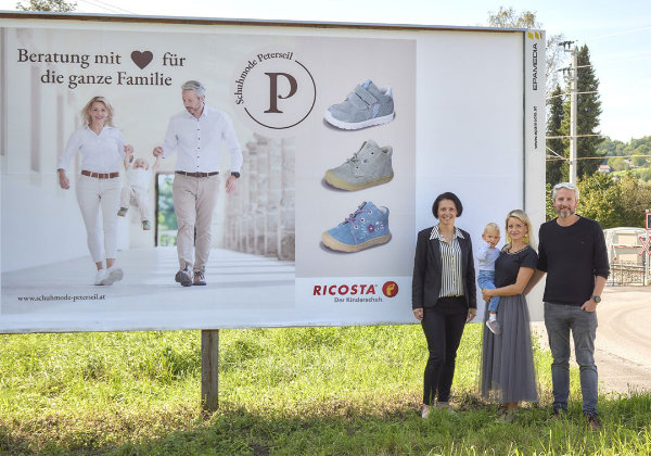 "Der Herbst steht vor der Tür, die schönste Jahreszeit. Die Natur lädt zum Spaziergang ein und mit dem richtigen Schuhwerk spielen die Temperaturen keine Rolle. Wir bieten eine große Auswahl direkt im Ort und möchten mit der Plakatkampagne noch mehr Menschen auf unser Angebot aufmerksam machen. Epamedia unterstützt uns hier mit top Expertise und Beratung, damit noch mehr Menschen unser Geschäft mit einem Lächeln verlassen", sagt Birgit Brandstätter, Marketing Schuhmode Peterseil.