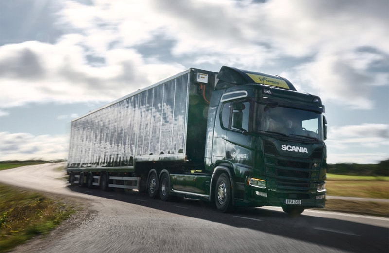 Der Prototyp des innovativen Sattelschleppers soll 5.000 kostenlose Extrakilometer pro Jahr bieten. Gebaut wurde er vom zu Volkswagen gehörenden schwedischen Unternehmen Scania Södertälje. In sonnenreichen Regionen sollen es sogar 10.000 Kilometer sein. Die zusätzlichen Kilometer kommen vom Auflieger. Dort sind 100 Quadratmeter Solarzellen montiert, die besonders leicht und effektiv sein sollen. Hergestellt hat sie Midsummer, und zwar mit 90 Prozent weniger CO2-Emissionen als in anderen Ländern üblich, betont das Unternehmen.